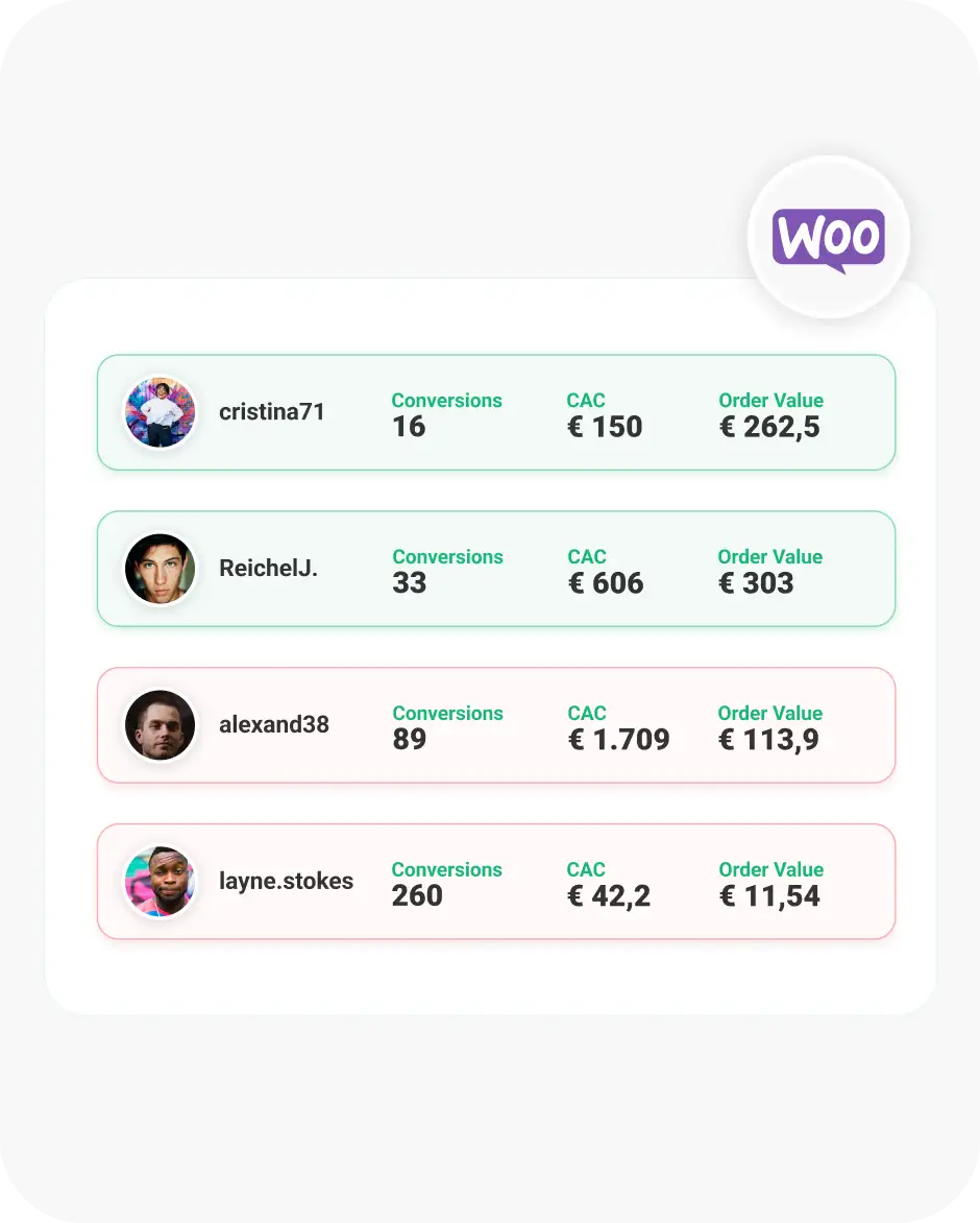 Keep your WooCommerce campaigns holistically in view - with over 20 KPIs, creator reports, and clear revenue analytics.